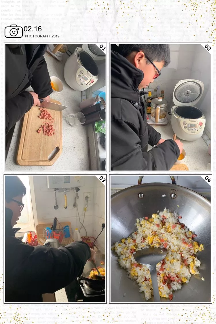 火腿切丁、搅拌蛋液、翻炒食材、大功告成!自己动手,丰衣足食����