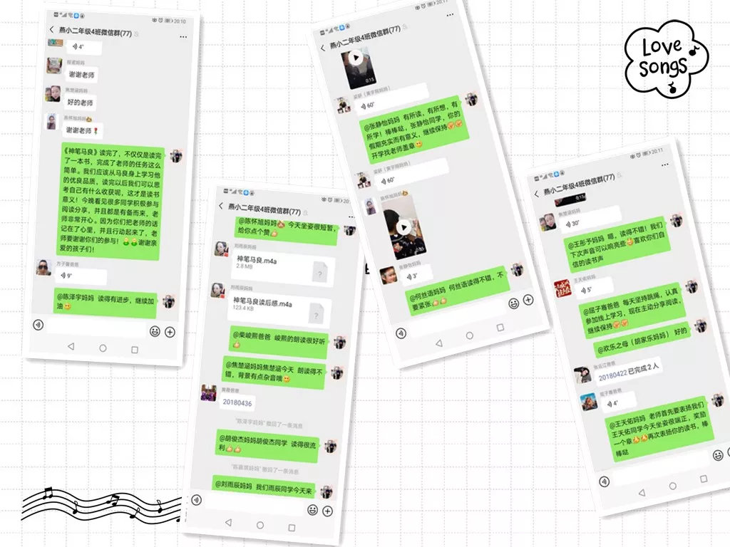在这个加长版的假期里,二年级的师生们虽无法相聚,但网线成为了他们彼此之间的纽带,让他们的沟通流畅无阻。班主任老师们常在群里给大家发送温馨提醒,定期统计、询问各个家庭的基本情况,工作细致负责。