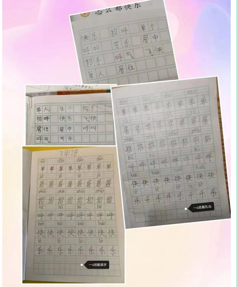 二年级小朋友们已经掌握了一些常用汉字的书写规律,瞧!孩子们结合视频教学,自主练习完成的《习字册》,一个个工整的汉字让人竖起大拇指!课文背诵比赛也是热火朝天,小朋友们背得不亦乐乎。
