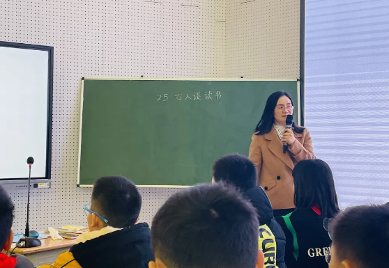 赵美凤老师带来《古人谈读书(一)》,以“我会读”“我会说”“我会背”为闯关环节,激发学生对小古文的求知欲。赵老师重在借助多种形式理解文中读音与释义较难的字词,指导对古文进行整句理解及表达,最后引导学生在反复诵读中理解感悟,并联系生活实际谈启发。课堂上相机完成《补充习题》相关练习,布置制作书签,教学活动扎实高效,学生兴趣浓厚。