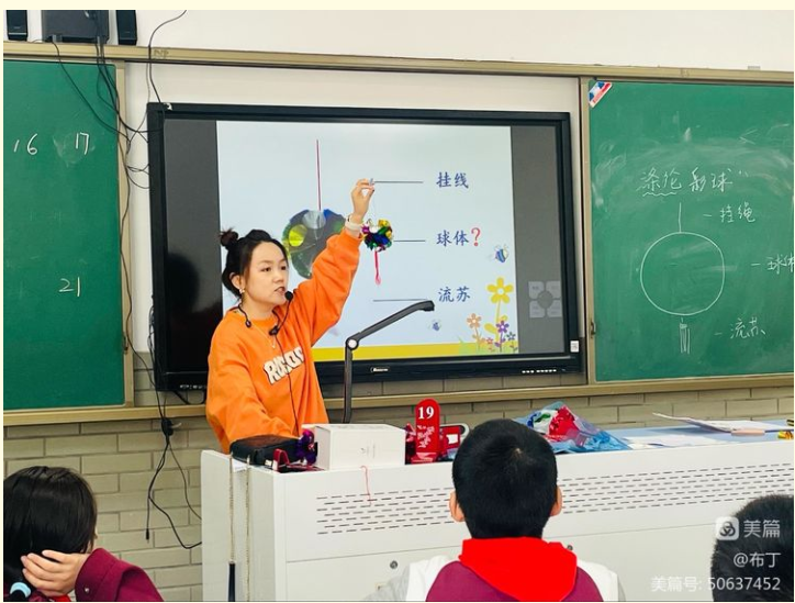 管梅君老师通过学生自主探究、交流讨论,启发引导、视频演示,逐步深入了解涤纶彩球的制作方法与步骤,富有层次,收到了良好的课堂效果。