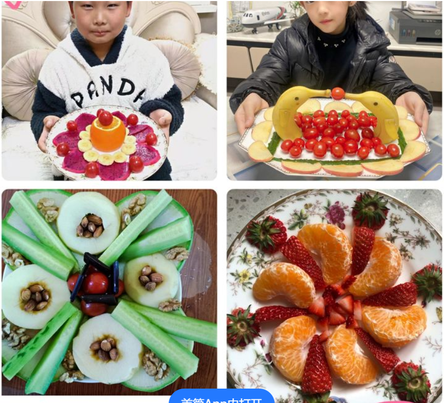 三年级学生围绕线下学习主题《走进水果王国》,开展了制作水果拼盘的活动,将水果做成了一幅可吃可赏的“画”。孩子们的水果作品“千姿百态”,“用料十足”,瞧这可爱的机器人造型,瞧这诱人的树莓夹心,又瞧瞧这专业的水果摆盘,真是不输大厨水平。孩子们纷纷表达:自己动手,乐趣横生!平时不爱吃的水果都变得更加香甜了!