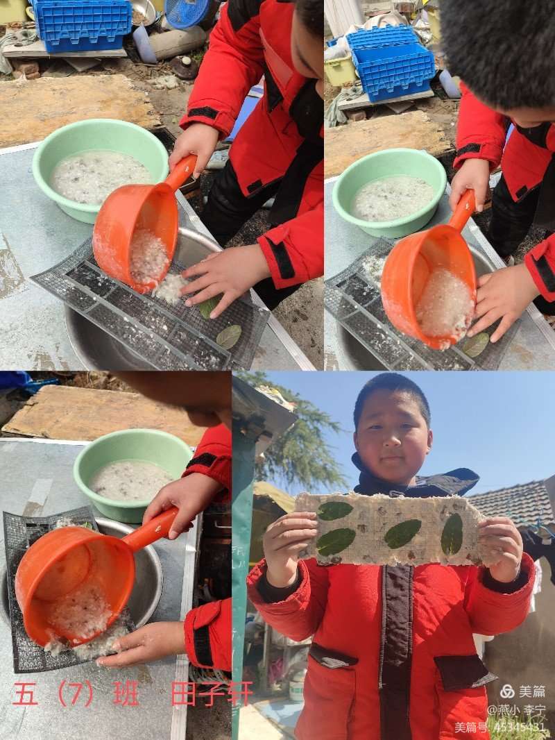 同学们还自己学着制作再生纸,看看我们设计制作的花样“再生纸”。