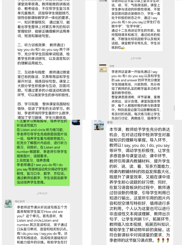 课后,听课教师们围绕教学评一体化与单元复习开展了线上研讨。