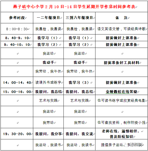 “凡事预则立,不预则废。” 有计划的同学,延期开学之初的这一周,已经准备进入新学期状态啦!你准备制定怎样的作息时间表呢?结合后面提供的课表,这里有一份给你参考呀!