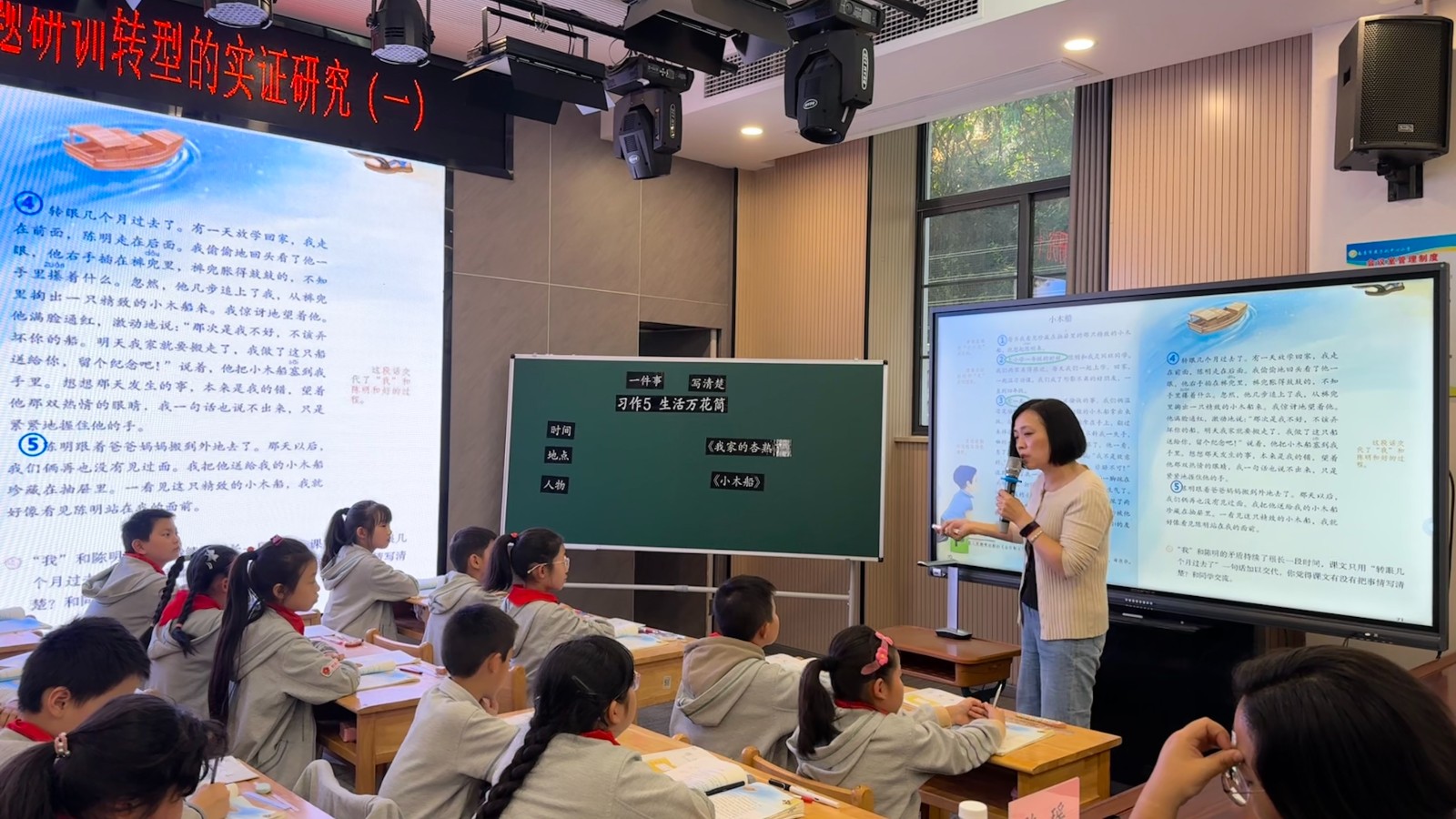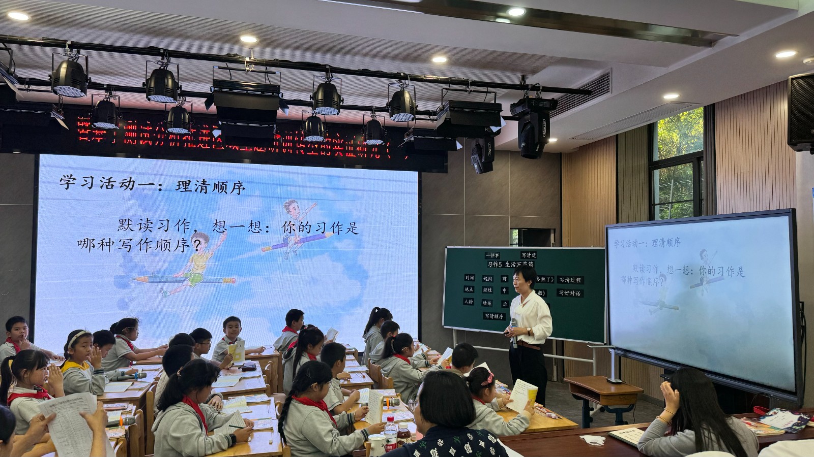 第二节课,何俊玮老师执教《爬天都峰》第一课时。何老师先带领孩子理清课文的写作顺序,让写作顺序在学生心中深深扎根。接着带领学生品读课文,渗透如何把事情的过程写清楚。最后关注文章中的对话,让学生明白写清对话也可以帮助我们写清楚一件事。何老师这种指向写作的阅读课,让学生习得了“写一件事”的技巧和方法,为进一步修改习作做好了铺垫。