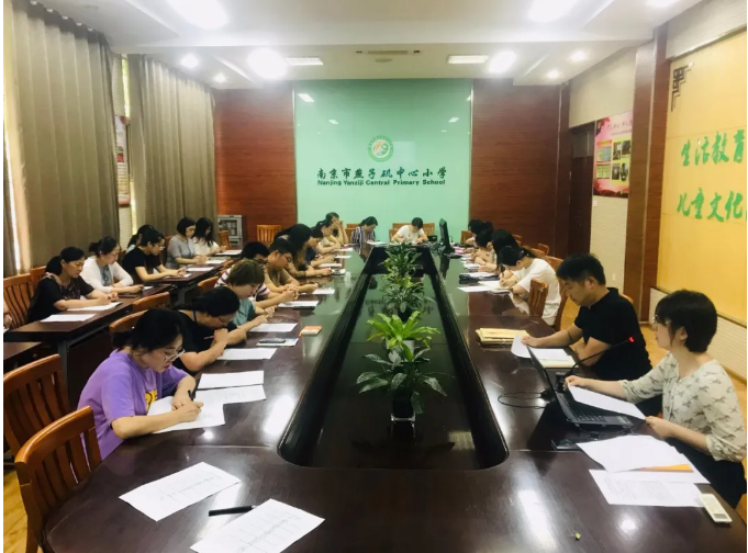 7月7日中午,燕子矶中心小学召开了七月份班主任例会,燕小班主任齐聚一楼会议室。会议由德育处梁倩主任主持。