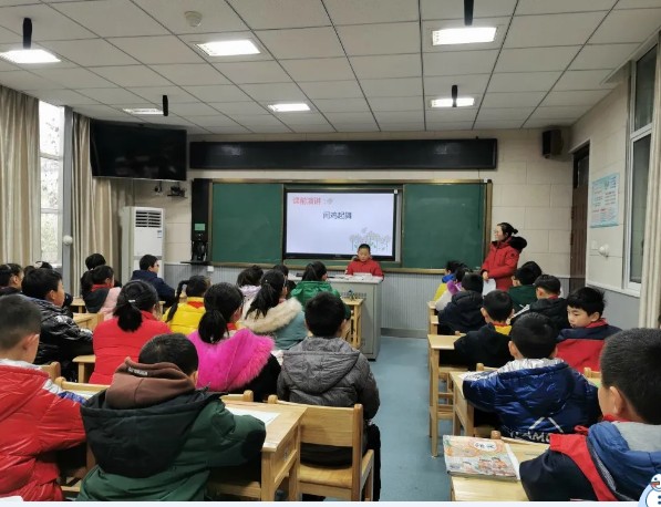 第二节课是由石以航老师带来的一节基础积累专项复习课,石老师以闯关的形式将课堂分为三个环节,分别是我是小小汉字员、我是小小语言家、我是小小古诗家。“我是小小汉字员”通过出示课后识字表、写字表和词语表帮助学生梳理字词,从易错字、多音字等方面对字词进行巩固。“我是小小语言家”环节以修改病句引入,讲练结合,重在巩固。“我是小小古诗家”以图片猜古诗,复习古诗背诵。整堂课环节紧凑,学生积极性高。