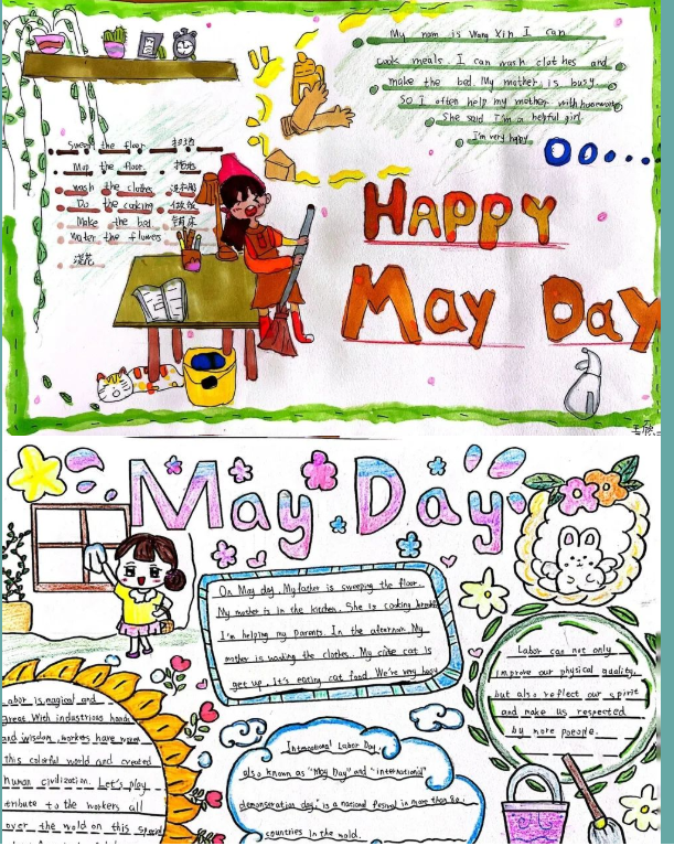 有的同学将自己的劳动身影拍摄下来,图文并茂的进行介绍;有的同学用英文向大家介绍起了劳动节的由来;有的同学则描绘出了家庭劳动、班级劳动等不同的场景。请欣赏同学们的优秀作品吧!