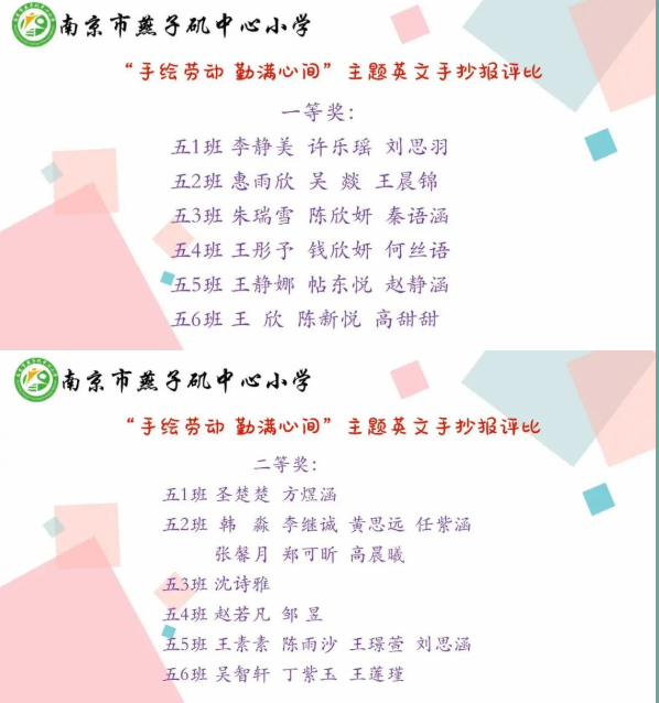 劳动最伟大,劳动最光荣。如何在学科教学中进行劳动教育的有效渗透,一直是我校友学课堂的研究目标。例如在英语学科中,五年级学生共同学习与劳动相关的词汇与句型,谈论与劳动相切合的话题。在本次“燕小劳动节”来临之际,我校教导处联合五年级英语组开展“手绘劳动 勤满心间”的英文手抄报评比活动,孩子们结合所学所获,表达着对于劳动的热情。