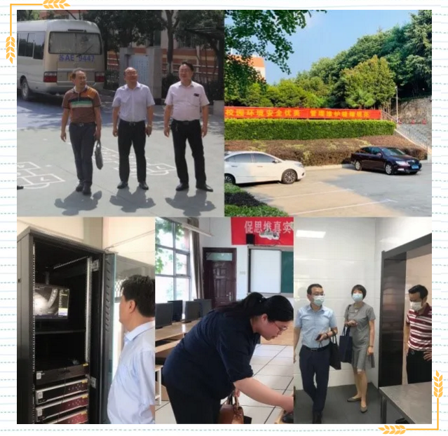 检查组专家首先对我校食堂、图书馆、实验室、功能教室、环境卫生、绿化、信息中心、运动场馆各类设施设备进行了现场检查,并与相关负责老师进行了交流。检查组对照各项评估细则,详细查阅了标准化建设专项资料,并结合情况问询、查阅图像新闻等形式对教育技术装备、安全管理、校舍管理方面的年度考核相关项目展开评估。