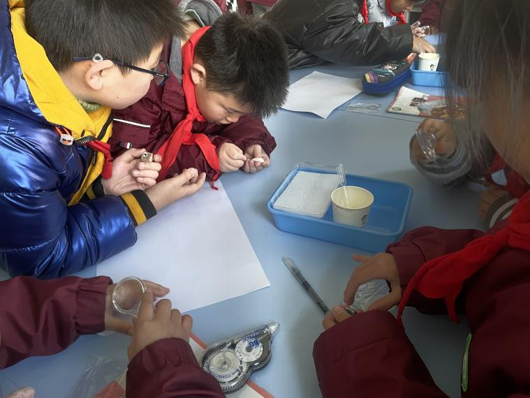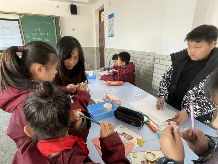 顾老师以科技节需要制作岩石展品说明卡导入,由此提问岩石展品说明卡上需要填写哪些内容以及我们应该如何观察岩石并确定岩石种类。在顾老师的带领下,同学们认真观察岩石并记录特征,最终完成岩石展品说明卡的制作。