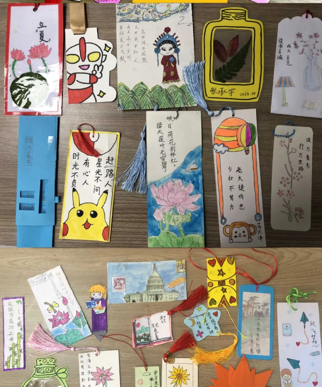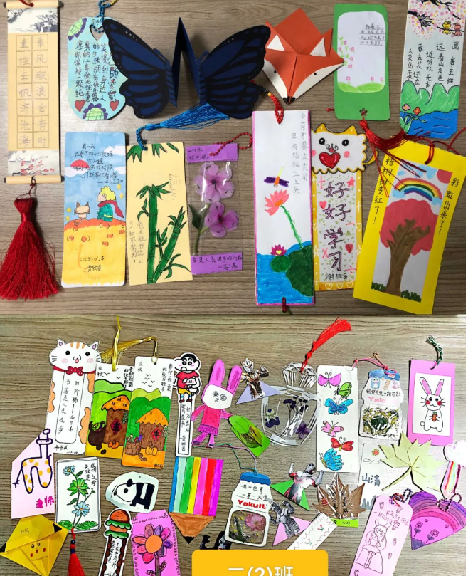 瞧,这一张张精美的书签,就是二年级同学设计的。他们将这凝聚巧思的书签夹入正在阅读的书籍中,有了书签的陪伴,阅读之旅也变得有滋有味!